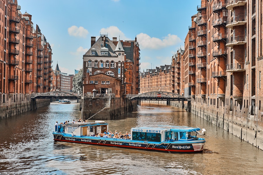 - Vous passerez devant des points clés, tels que le tunnel de l'Elbe ou la Speicherstadt, le plus grand quartier d'entrepôts sur pilotis en bois.